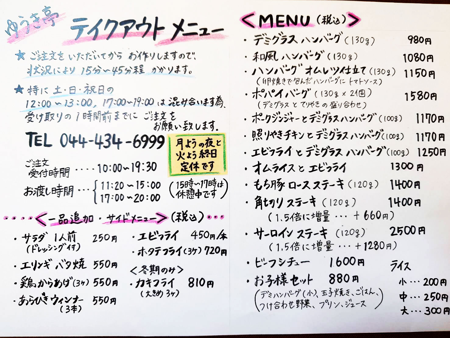 ★ご注文をいただいてからお作りしますので、状況により15分〜45分程かかります。 ★特に土・日・祝日の12:00〜13:00、17:00〜19:00は混み合いますため、受け取りの1時間前までにご注文をお願い致します。
